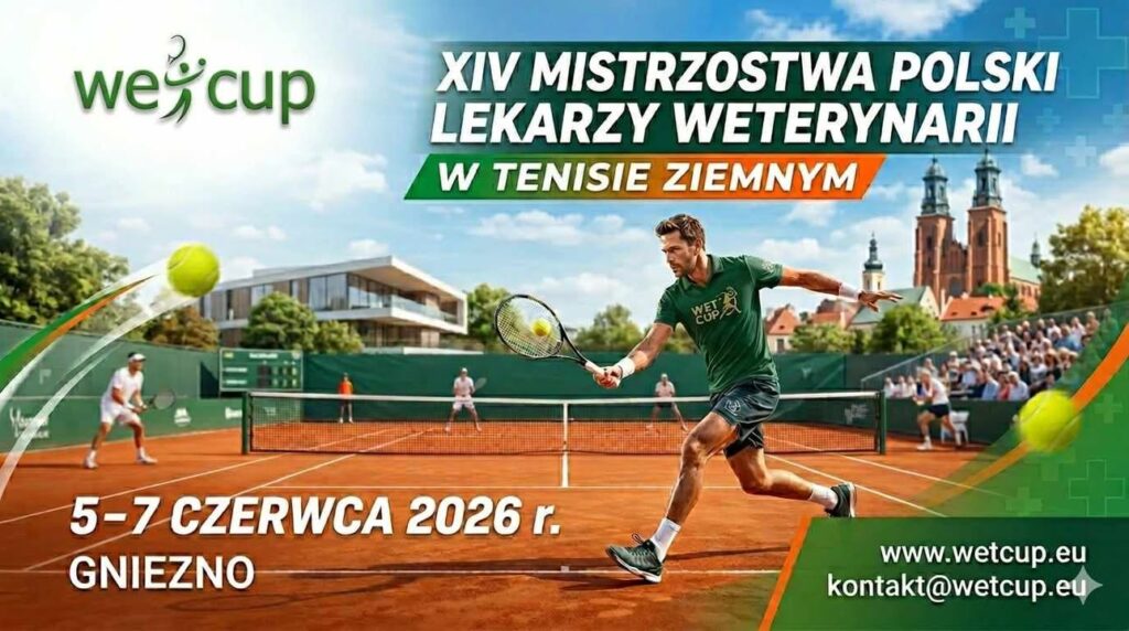 Zapraszamy do udziału w XIV edycji Mistrzostw Polski Lekarzy Weterynarii w tenisie, które odbędą się w Gnieźnie na kortach GKT przy ul. Sobieskiego w dniach 5-7 czerwca 2026 r.